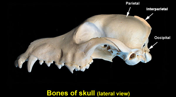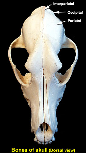 The interparietal is small bone wedged in between the two parietal bones. It fuses with the occipital bone and bears the caudal part of the sagittal crest.